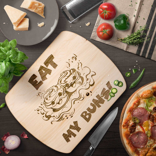 Funny Hardwood Oval Cutting Board - Eat My Buns