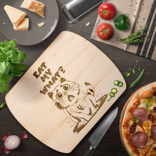 Funny Hardwood Oval Cutting Board - Eat My What 2